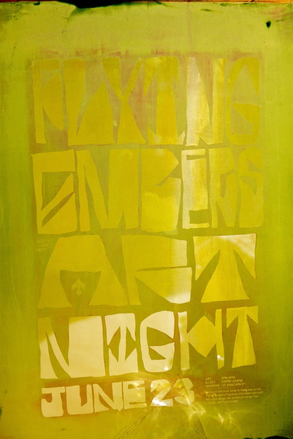Flying Embers Art Night - A Betty Project. T-Shirt Illustrations Art Night - Live Screen-printing, DJ Set & Good Times
